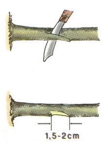 - Chọn cành chiết: cành bánh tẻ, khoẻ mạnh, khoanh vỏ rộng 2- 3 cm, cạo sạch lớp tượng tầng, để khô nhựa 2- 3 ngày rồi bó bầu.